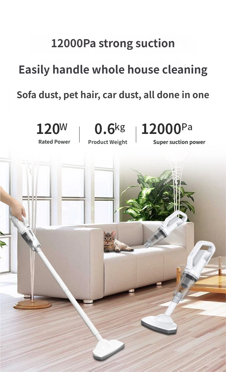 - High Efficiency Motor: 120W input power ensures strong, consistent suction for thorough cleaning every time.